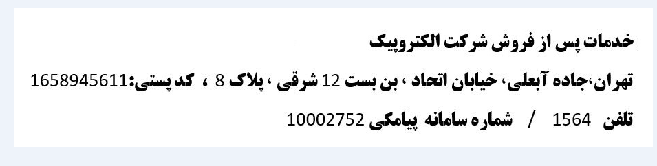 ادرس خدمات پس ازفروش شرکت الکتروپیک.